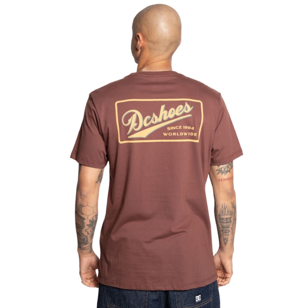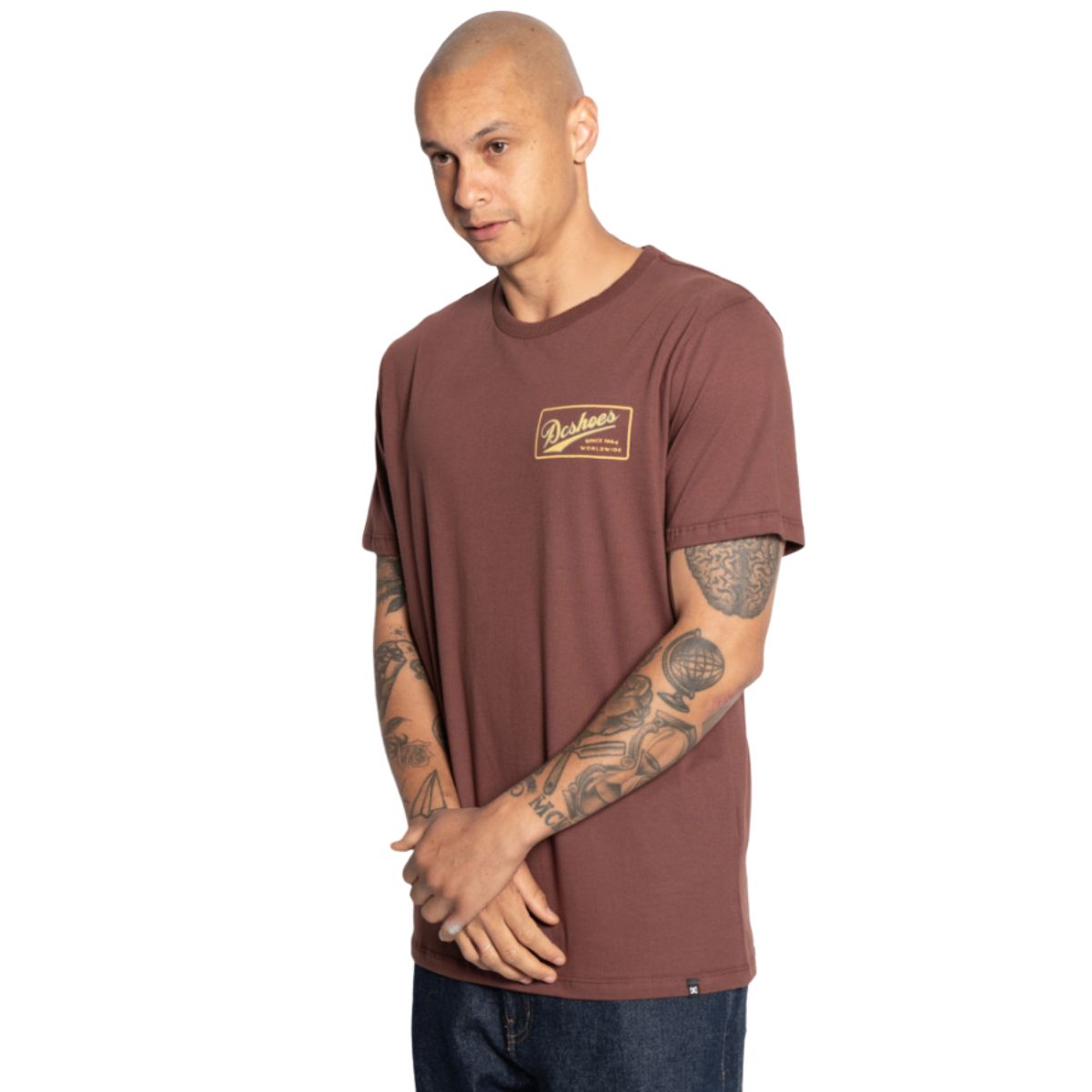 Camiseta de malha de algodão, com estampa na frente, etiquetas perosnalizadas em alta definição Dc shoes. Esse modelo é a escolha ideal para quem busca casual e conforto.