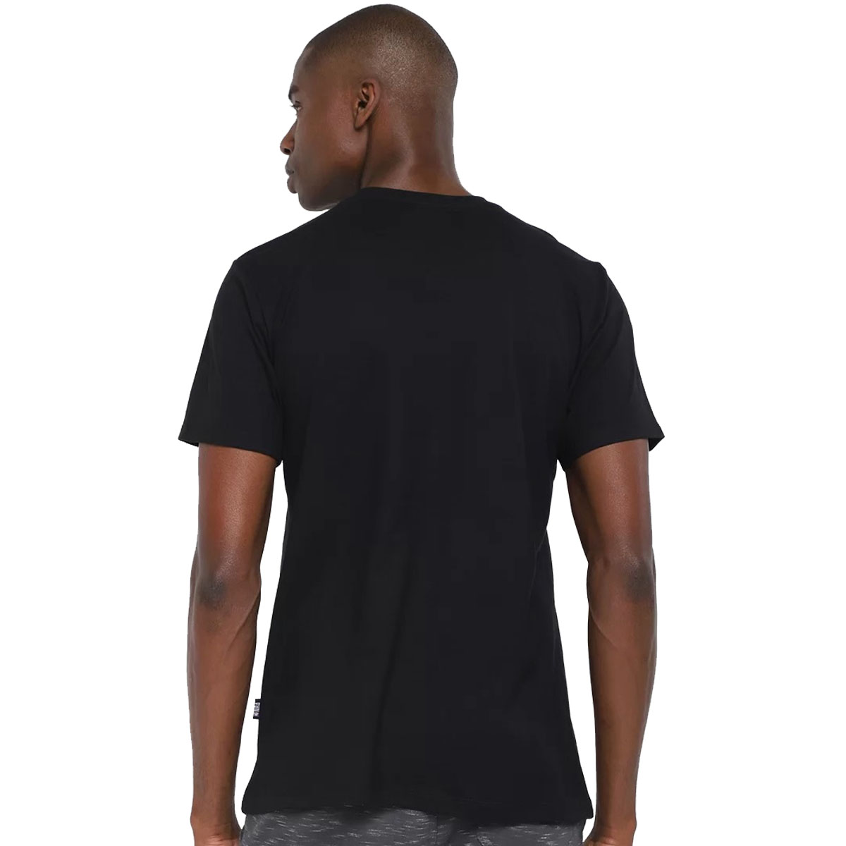 Conta com mangas curtas e sua gola é careca, canelada e tira interna.