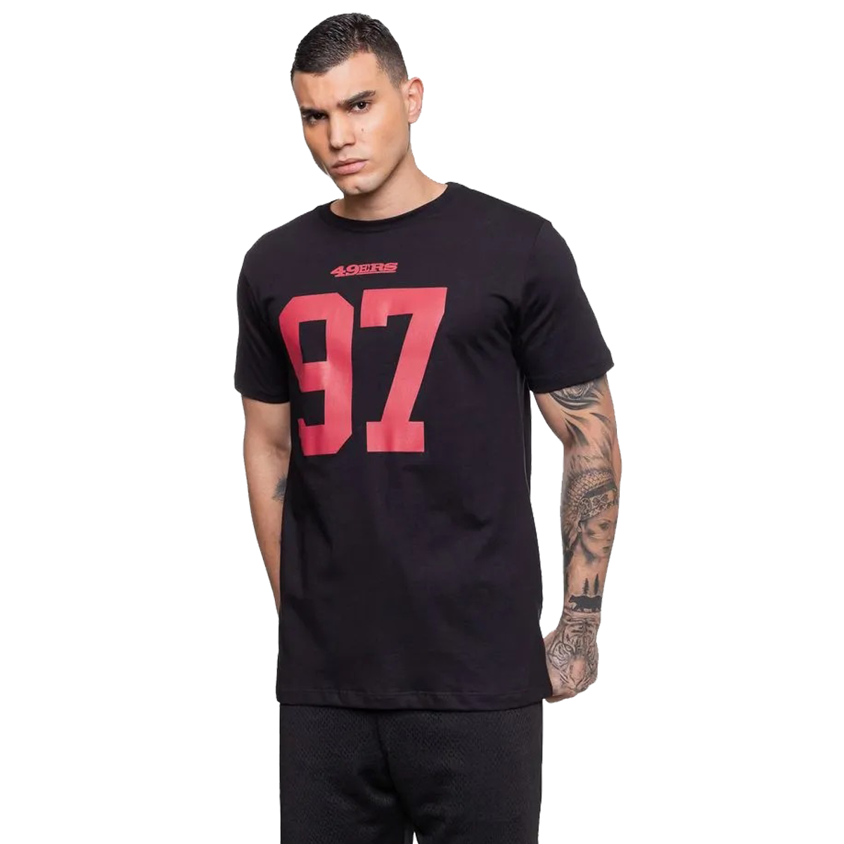 Exiba seu entusiasmo pelo San Francisco 49ers e pelo poderoso jogador Nick Bosa com esta camiseta masculina, que destaca o número 97 estampado nas costas. Confeccionada em 100% algodão, a camiseta oferece um toque suave e conforto duradouro, ideal para todos os momentos de torcida.