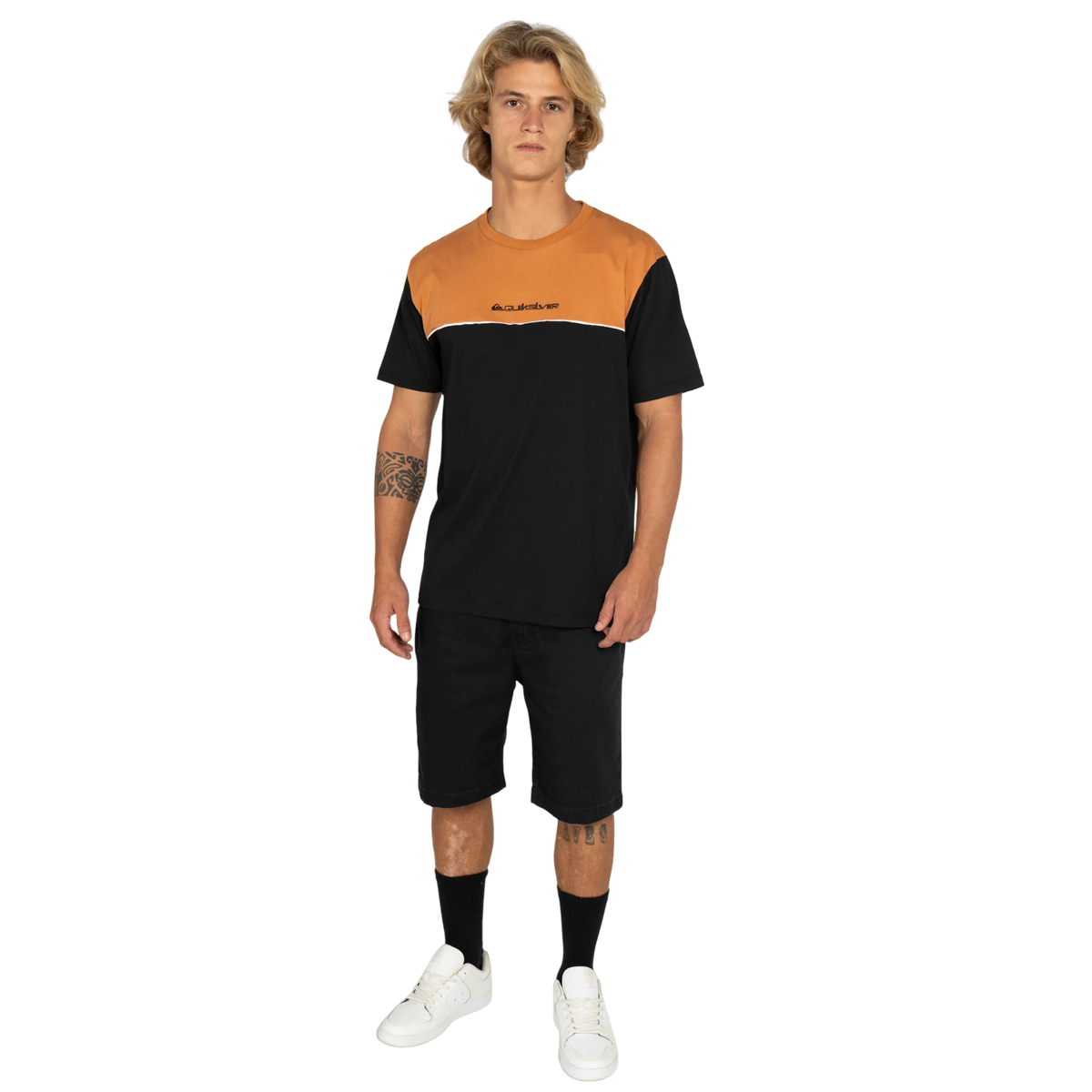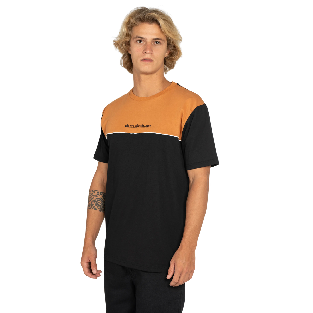 Estilo e atitude para o dia a dia! A camiseta Quiksilver Block Company traz um design moderno com recorte em cores contrastantes mostarda e preto, ideal para quem curte um visual autêntico. Confeccionada em algodão macio, oferece conforto e respirabilidade. Possui modelagem regular, gola careca e estampa discreta com o logo da marca no peito. Perfeita para compor looks casuais com muita personalidade.