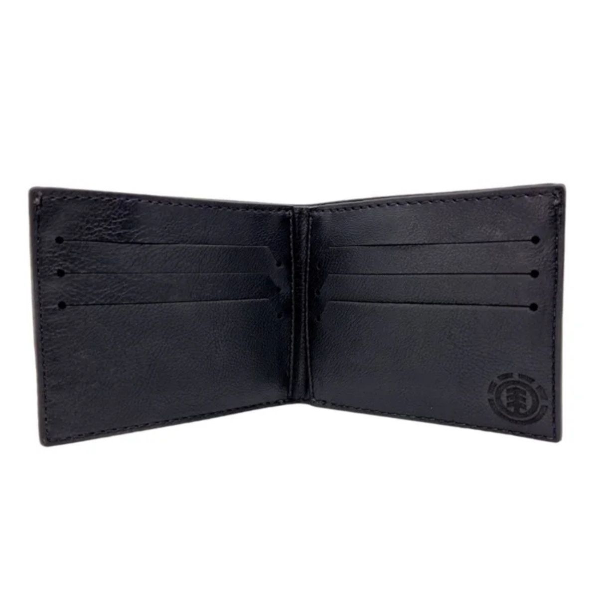 Carteira Element com repartições internas, mini patch na frente, aplicações internas em laser e etiquetas personalizadas Element.