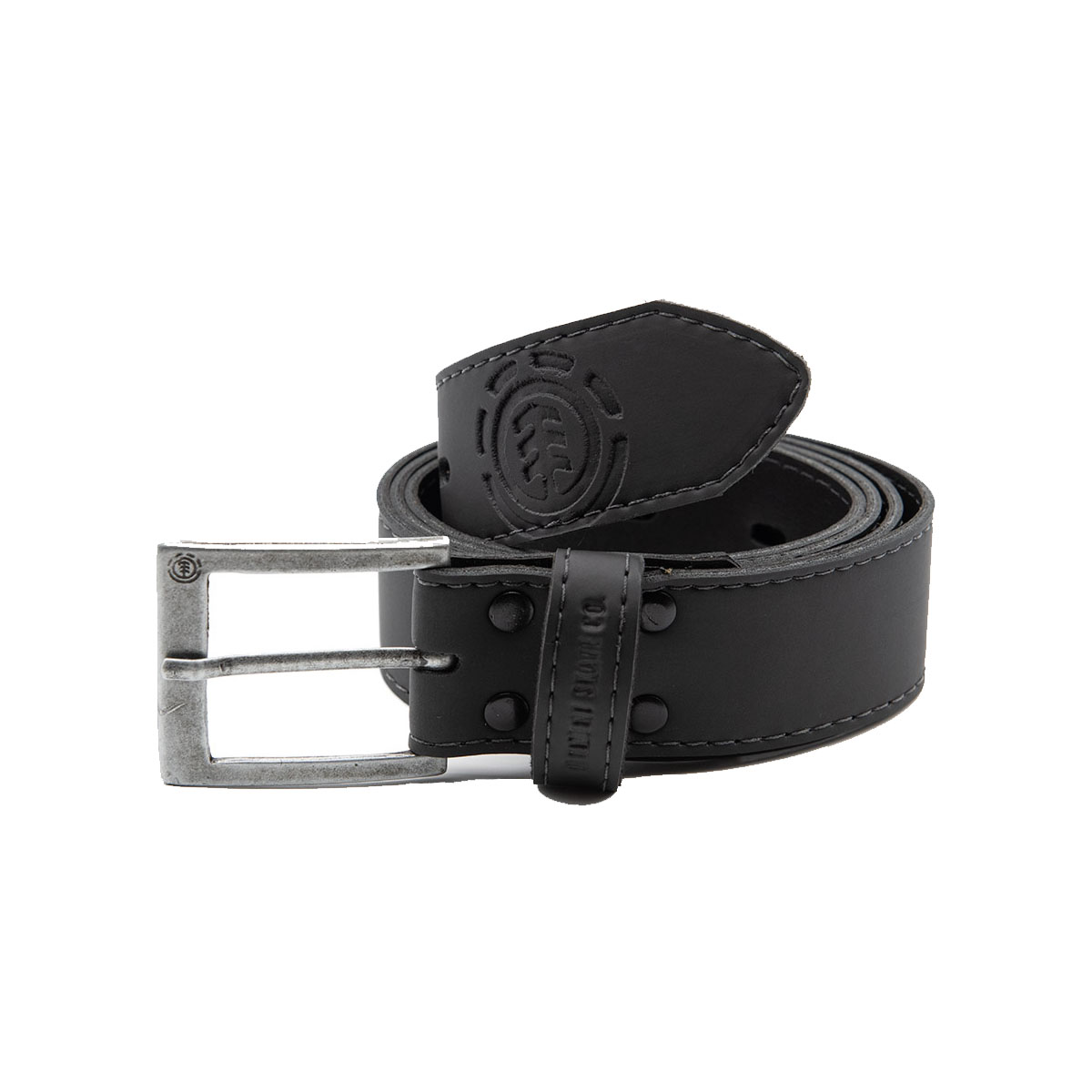 Cinto em couro fake, com fivela em metal, logo em relevo e etiquetas personalizadas Element.