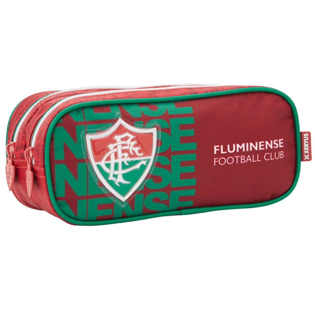 Mantenha o material escolar sempre em ordem com o estojo duplo do Fluminense! Feito de poliéster durável, este estojo apresenta dois compartimentos espaçosos, ideais para acomodar todos os itens necessários para as atividades escolares. O escudo do time em PVC patch na frente garante um toque especial de orgulho Tricolor. Perfeito para qualquer criança que quer demonstrar sua paixão pelo Nense até nos detalhes!