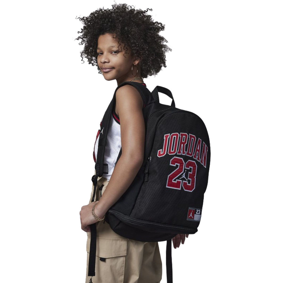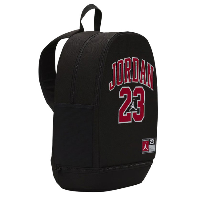 Apresentando um gráfico inspirado nas camisas que Michael Jordan usou, esta mochila tem um design versátil que você pode levar da escola para a academia, quadra de basquete ou qualquer outro lugar que você tenha que levar sua bagagem. O compartimento principal com zíper é agradável e espaçoso, e abriga uma capa acolchoada para laptop. Há um grande bolso com zíper na frente que revela um organizador que tem vários espaços para suas canetas, lápis, telefone, bloco de notas: qualquer coisa que você precise de acesso rápido. Os bolsos laterais para garrafas ajudam você a manter as metas de hidratação, uma parte traseira acolchoada e alças ajustáveis ​​criam um uso confortável e há uma garagem para sapatos com um fecho de correr na parte inferior da mochila que você pode usar para manter seus tênis de ginástica longe dos itens no espaço principal (como seu laptop) que você não quer sujar.